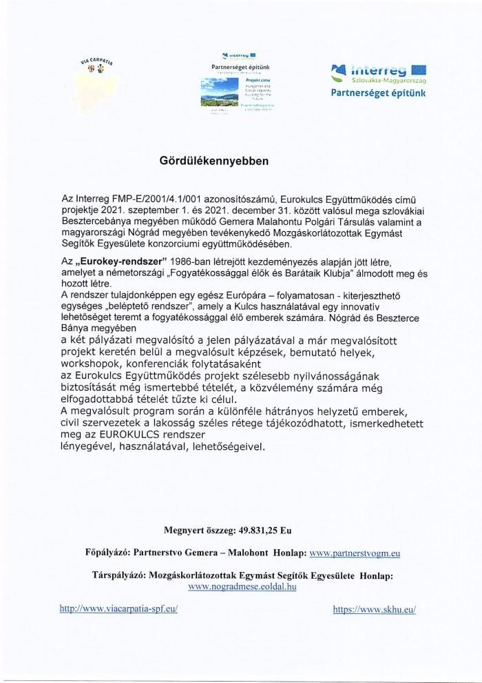 Társpályázó: Mozgáskorlátozottak Egymást Segítők Egyesülete Honlap: www.mesest.hu